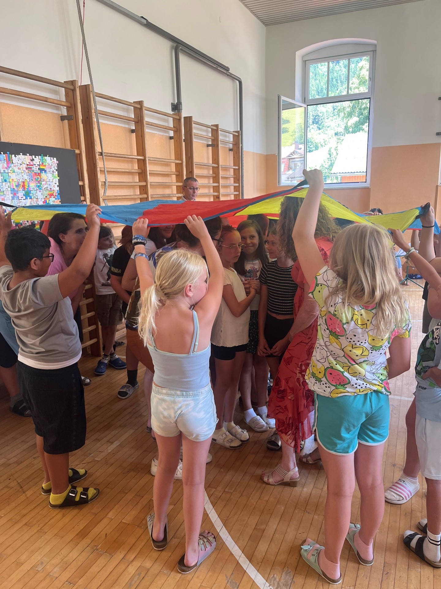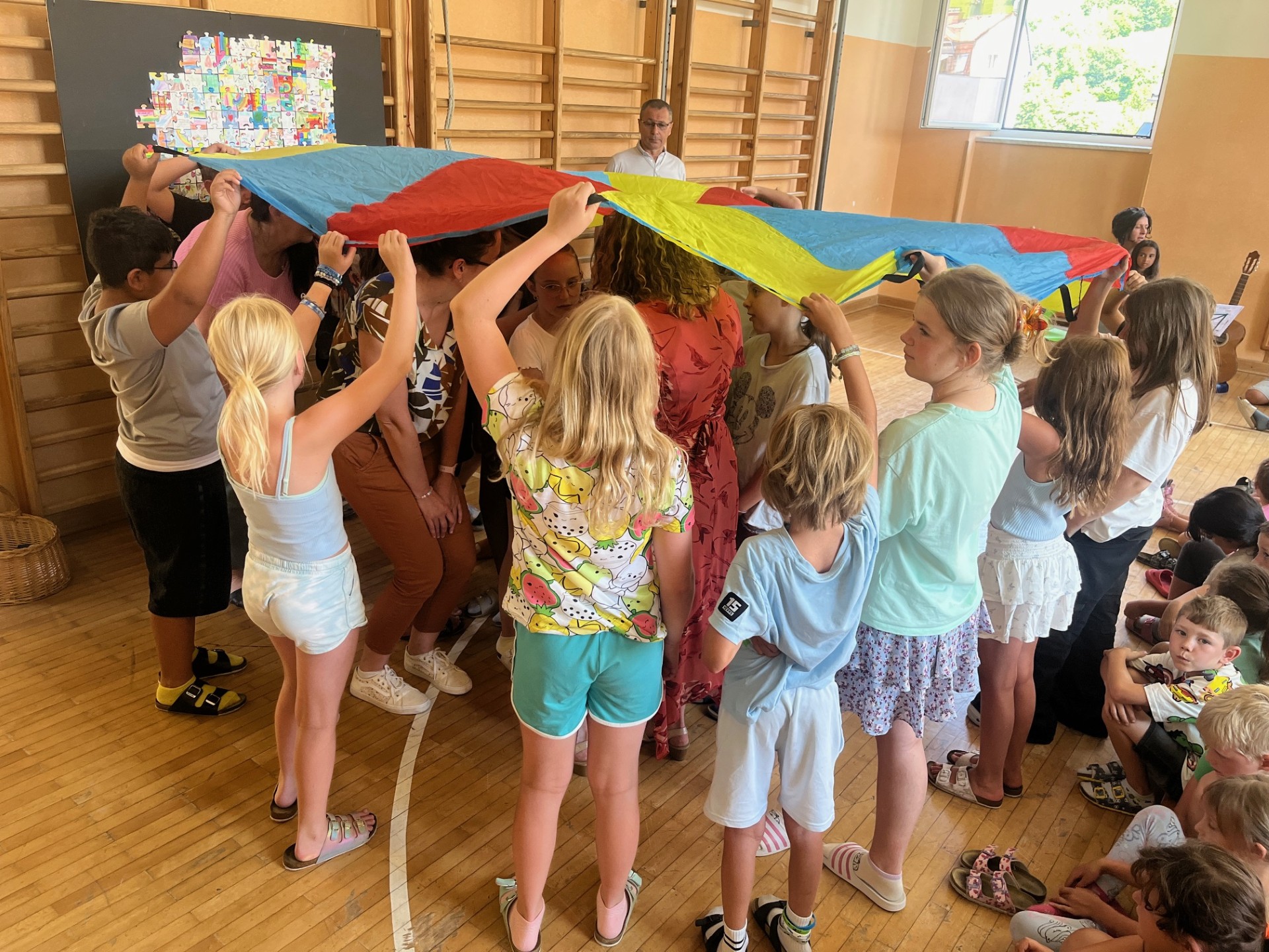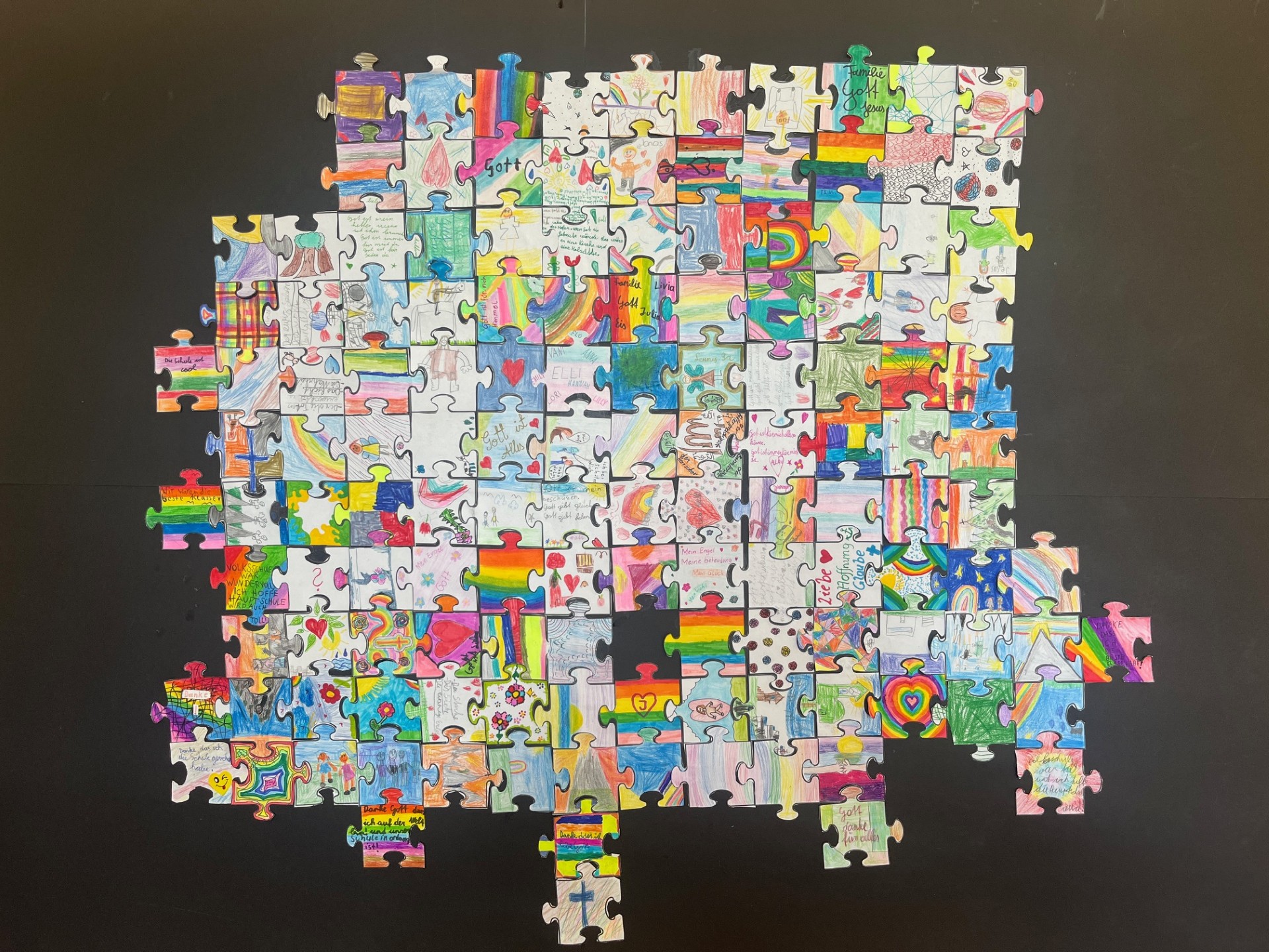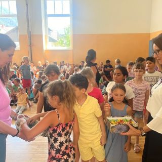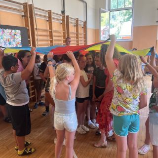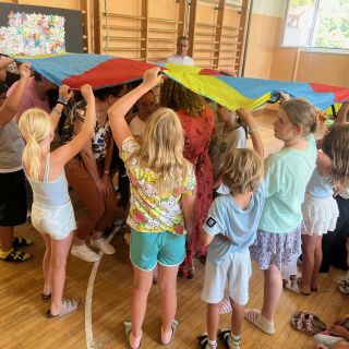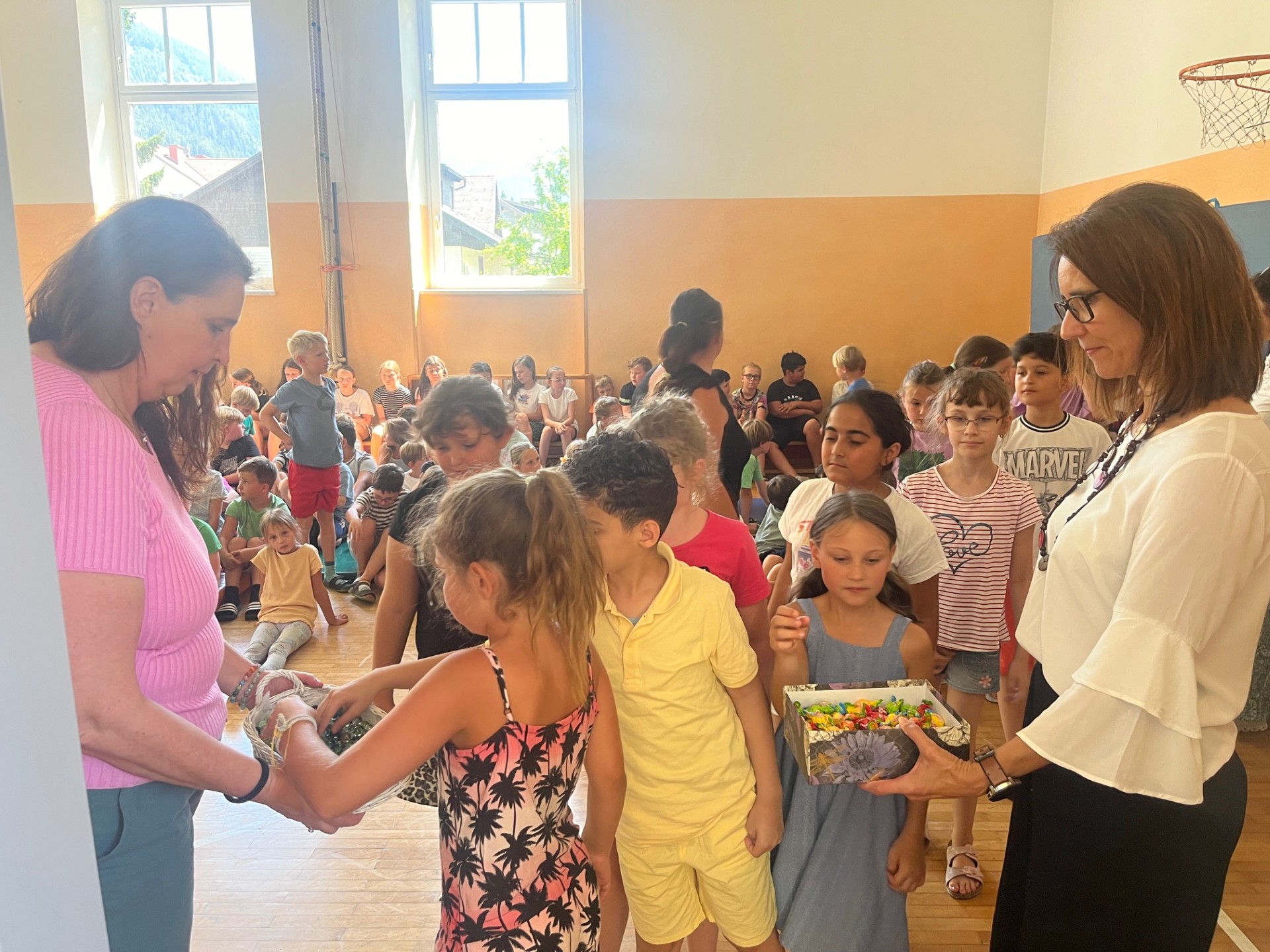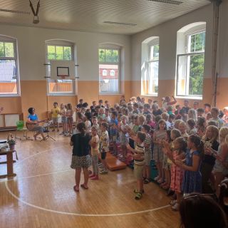 Für die Kinder und Lehrpersonen die unsere Schule verlassen, gab es einen besonderen bunten Segen unter dem Tuch. Zum Abschluss bekam jedes Kind eine Kleinigkeit mit auf den weiteren Weg.